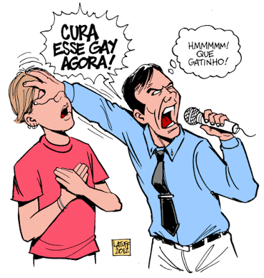 Alguns religiosos ficam criando programas de conversão de héteros e também criam discursos em que os gays são uma aberração, são contra a natureza.