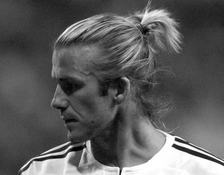 Ainda na sua época de Real Madrid, em 2003, Beckham apostou no coque samurai: cabelo comprido e preso no topo da cabeça. Já se passaram muitos anos desde então. Mas esse hairstyle voltou com tudo recentemente. Se você está cabeludo, vale a pena investir no coque samurai