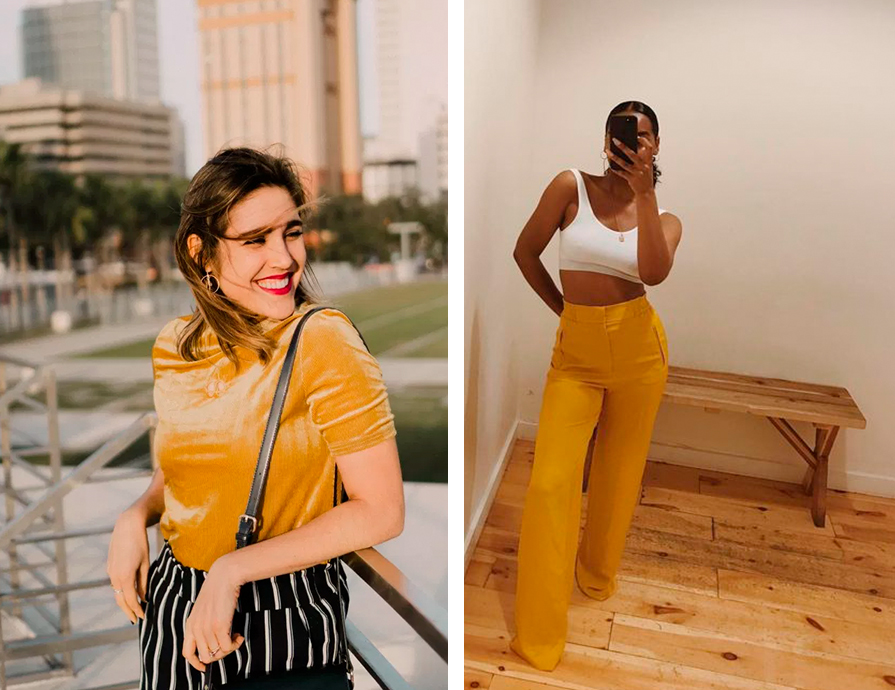 Não dá pra negar: amarelo é a cara do verão. A cor solar e bem alegre ajuda a dar vida aos looks mais simples, mas nesse verão a tonalidade mostarda ganha destaque. O tom um pouco mais sóbrio é perfeito para quem não é tão adepta de cores vibrantes.