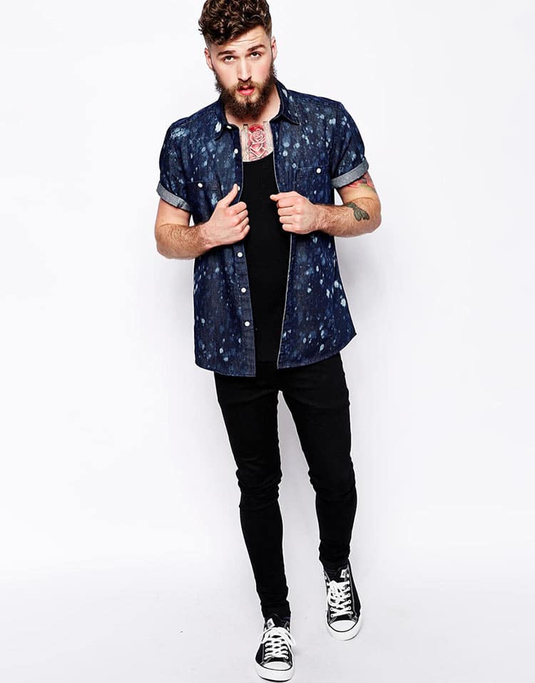 O bacana é que o look além de ficar jovem e estiloso, também te deixa preparado para algumas alterações de clima. Se estiver muito calor é só você amarrar a camisa na cintura. Se estiver pouco calor é só usar a manga da camisa dobrada. Já se der uma esfriadinha, é só deixar a manga fechada.