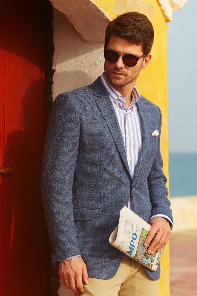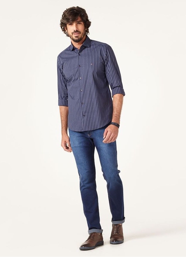 Listras grossas, florais em tom sobre tom e padrões geométricos valorizam as camisas da Aramis, enquanto algodão e linho aparecem como destaques nos materiais. A paleta de cores investe pesado no marinho e em tons de bege, enquanto os jeans recebem uma lavagem suave e elegante.