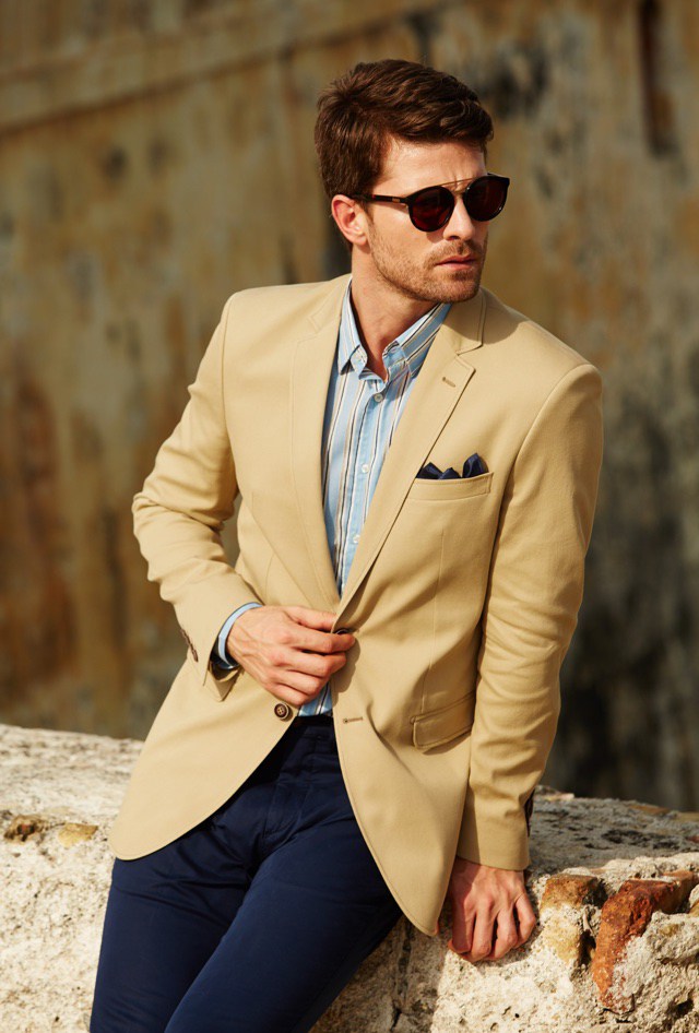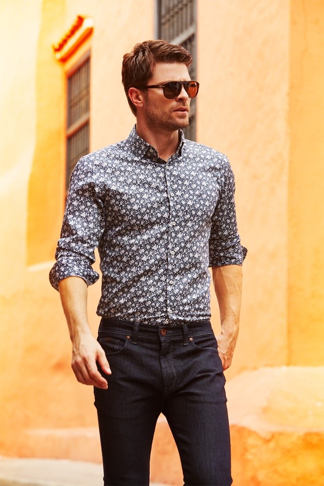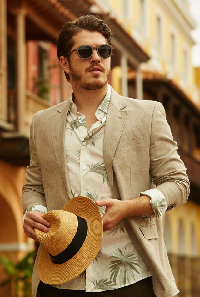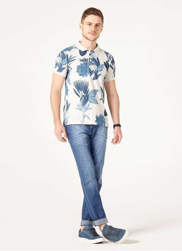 Listras grossas, florais em tom sobre tom e padrões geométricos valorizam as camisas da Aramis, enquanto algodão e linho aparecem como destaques nos materiais. A paleta de cores investe pesado no marinho e em tons de bege, enquanto os jeans recebem uma lavagem suave e elegante.