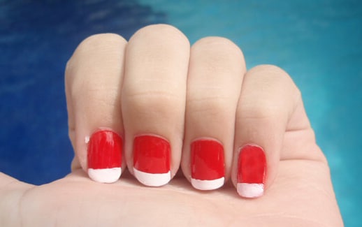 4. Esmalte vermelho com francesinha branca