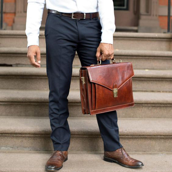 A “bolsa” preferida nos escritórios, algumas vezes mais próxima de uma maleta, dependendo de seu design. Também conhecida como “pasta”, o modelo em couro escuro ela vai bem com alfaiataria ou qualquer look que seja mais sério.
