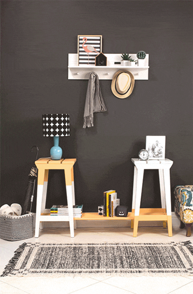 Da mesma maneira que você pode apoiar as coisas em cima da mesa ou do aparador, você pode utilizar objetos da decoração para isso. Uma caixa organizadora de crochê, por exemplo, além de dar mais charme ao ambiente, pode segurar seu guarda-chuva e coisas do gênero. Uma bandeja, pode deixar drinks expostos ou até mesmo acomodar chaves e cartas. As opções são múltiplas, encontre o que fica melhor para você.