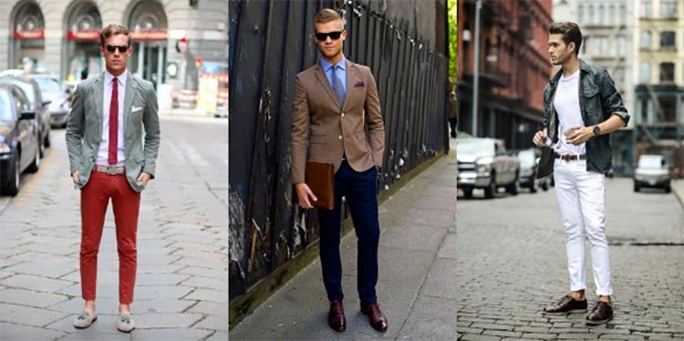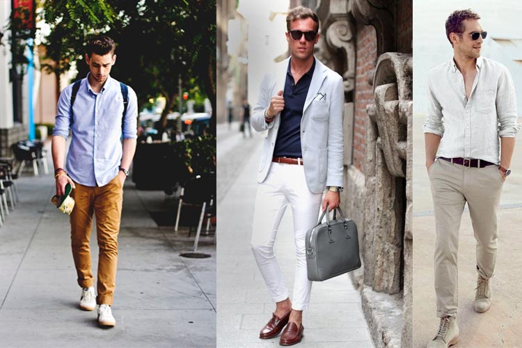 4 – Cores claras: Cores claras expandem, então é legal sempre colocar um ponto de luz onde seu peso visual for menor. Quando usar looks monocromáticos como o da direita, sempre coloque um cinto que faça contraste no meio do look para alargar e harmonizar a silhueta.