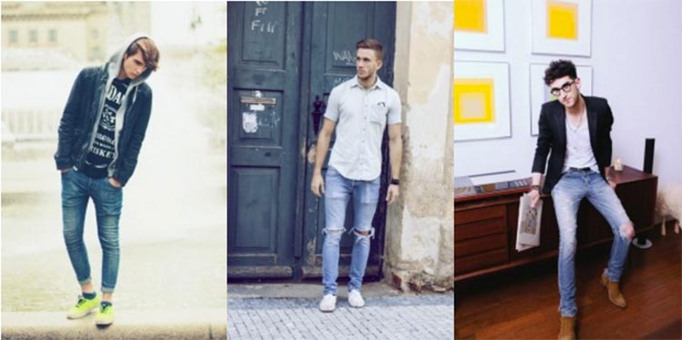 6 – Detalhes: Calças com lavagens diferenciadas ou destroyed, chamam a atenção para as pernas, então quem tem as pernas magras pode abusar delas. Assim como quem tem o torso mais magro deve abusar de camisetas com estampas.