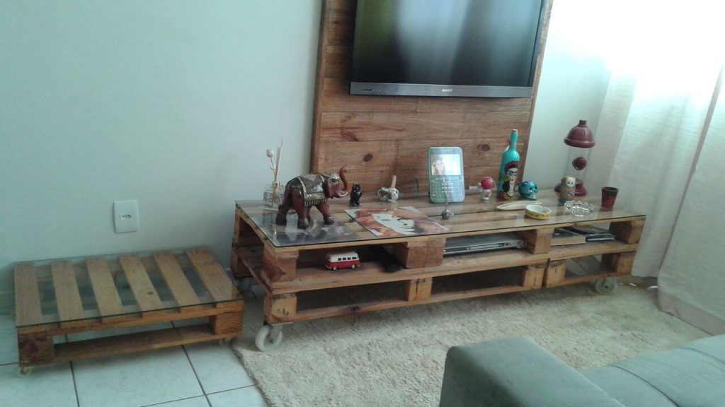 Pallets são outra tendência na hora de fazer decoração! Tente negociar alguns em bom estado de conservação em lojas de construção ou feirões ou depósitos. A quantidade vai depender do móvel que você deseja.