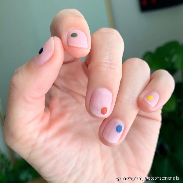 Quem gosta de desenhos nas unhas, mas prefere não se aventurar a fazer estilos complicados, pode apostar nas bolinhas nas unhas. A dica é apostar em cores de esmalte que tenham bastante contraste com a cor usada para a base.