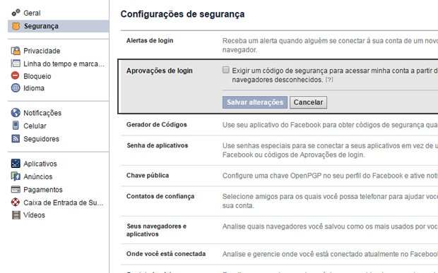 O aplicativo permite que você use seu celular como uma camada extra de segurança. Dessa forma, o Facebook irá exigir um código enviado para o seu celular toda vez que você tentar se logar em um navegador desconhecido.