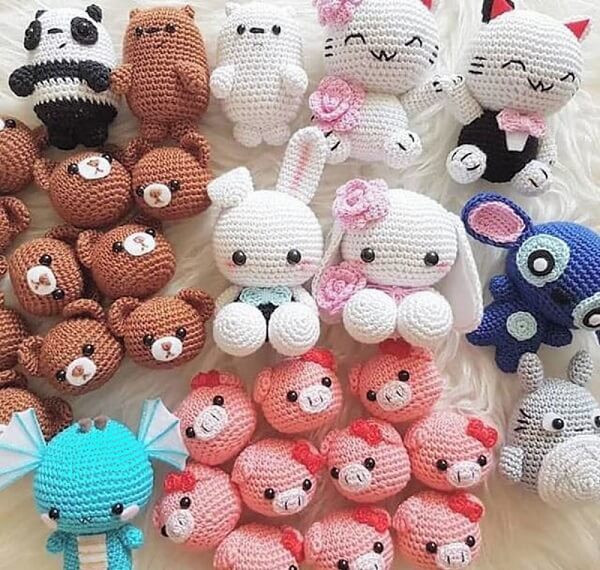 Exemplos das muitas possibilidades criativas do amigurumi são a boneca de amigurumi, o urso de amigurumi, o polvo de amigurumi e muitos outros. Com boas receitas de amigurumi você consegue modelos criativos e que com certeza serão os destaques de sua decoração. Mesmo até as versões de amigurumi para iniciantes são chamativos, provando que a beleza desse trabalho artesanal está na técnica.