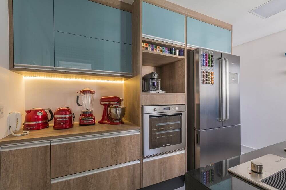 Mas em modelos de armário de cozinha planejado ou o armário de cozinha modulado também é possível pensar em projetos que se adaptem exatamente a essas necessidades.