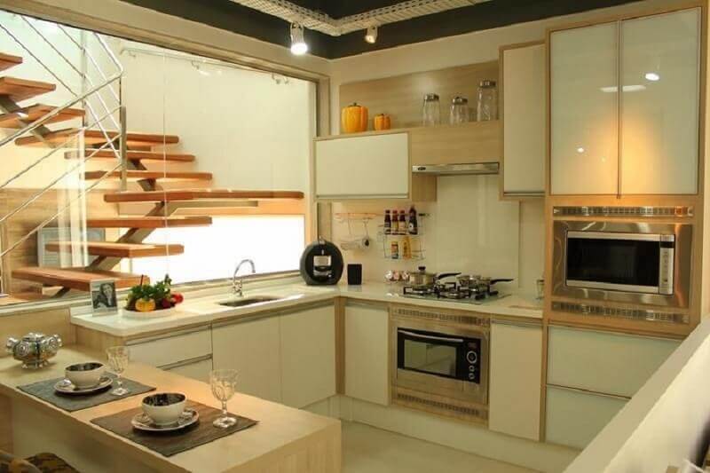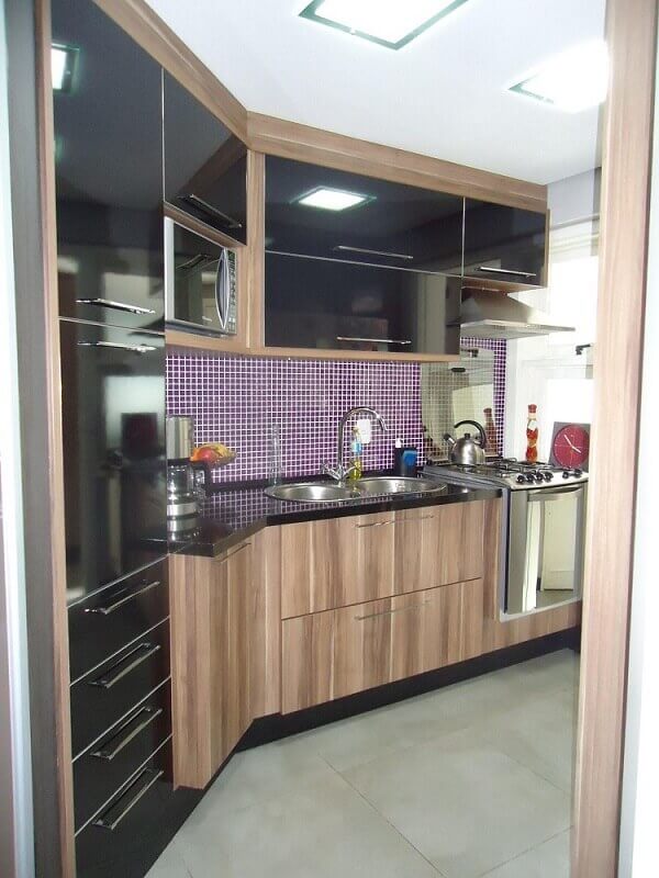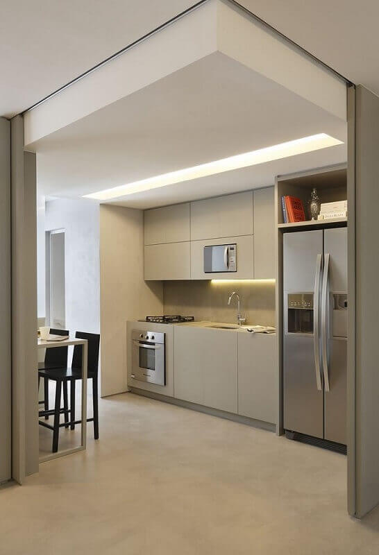 Uma boa forma de fazer o armário de cozinha pequeno é investindo em projetos de armários de cozinha modulado ou planejado, pois, como a cozinha é pequena, é interessante poder explorar todos os cantinhos do ambiente. Desta forma, os armários de cozinha atendem sua necessidade cotidiana e facilita na hora de organizar a cozinha.