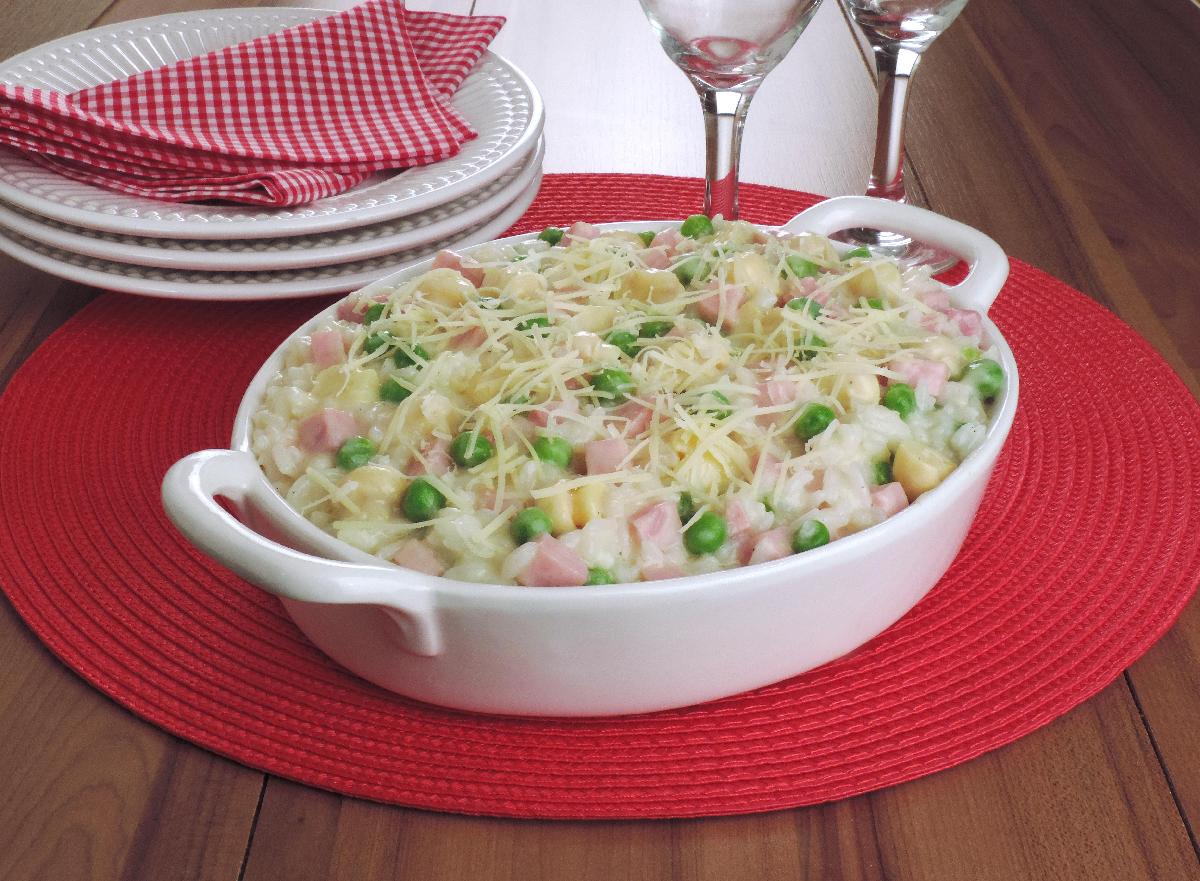 - Em seguida junte 1 e ½ xícara de arroz cozido. Misture deixe o arroz impregnar com os temperos por 1 minuto.