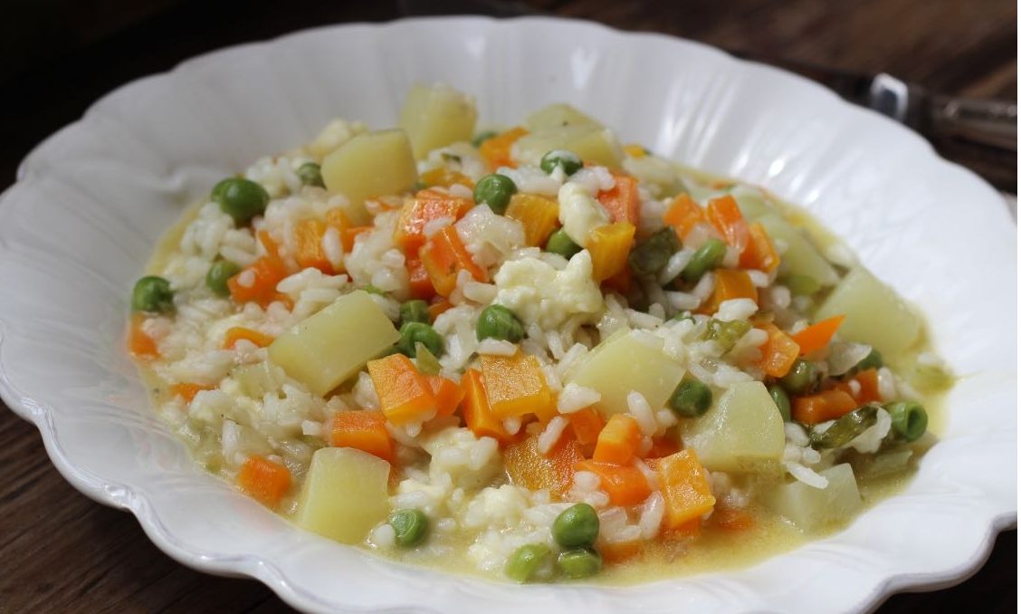 Adicione a batata cozida e amassada, o cheiro-verde, a maisena e a farinha de trigo de uma só vez e mexa com uma colher de pau até soltar do fundo da panela.