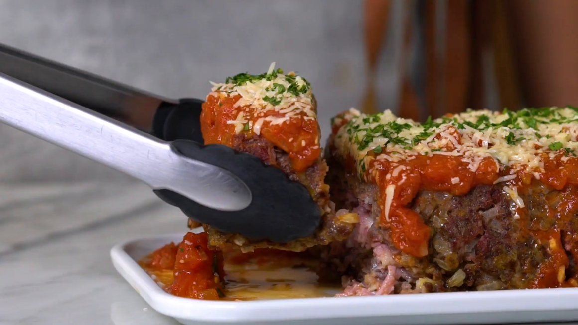 - Desenformar, cobrir com o molho de tomate quente e finalizar com parmesão ralado.