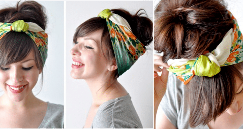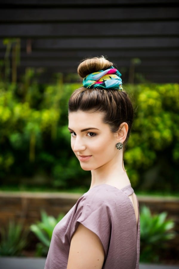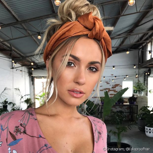 Se você fez um coque alto e quer dar um upgrade no visual, você também pode usar um lenço como tiara, ao redor da cabeça. O resultado é um hairstyle retrô e prático.