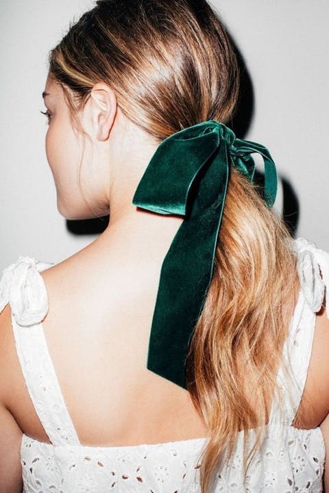 O rabo de cavalo também pode ficar mais charmoso se você usar um lenço pequeno e fino para formar um lacinho na base do penteado. No rabo de cavalo baixo, o resultado é um look vintage e delicado.
