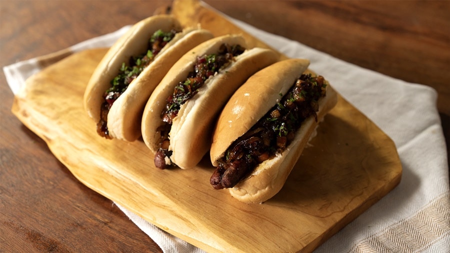 - Em uma frigideira quente, grelhar as linguiças até ficarem bem douradas.