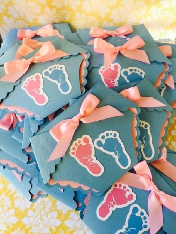 Evite colocar no convite chá revelação motivos femininos ou masculinos e sempre escolha por temas e cores neutras. Para elaborar o convite chá revelação é possível utilizar vários materiais como papel cartão, juta, tecido ou até mesmo fazer convites digitais.
