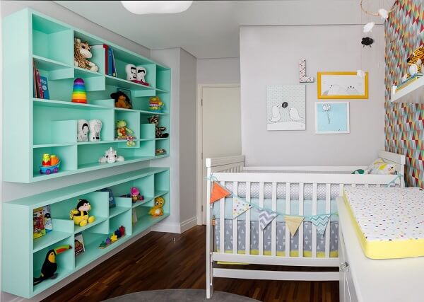E, em se tratando de um ambientes para os pequeninos, assim como a cômoda que auxilia muito nesse ambiente, procure optar pela escolha de uma estante para quarto de bebê que seja embutida na parede, assim não tem perigo do móvel se movimentar caso as mãozinhas curiosas dos nossos integrantes da casa queiram explorar o novo móvel do ambiente.