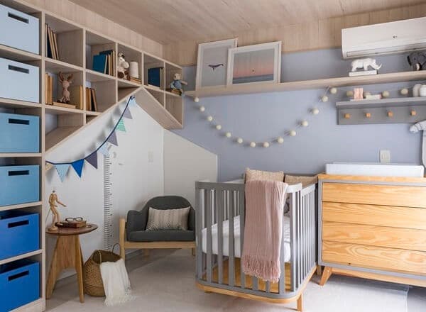 E, em se tratando de um ambientes para os pequeninos, assim como a cômoda que auxilia muito nesse ambiente, procure optar pela escolha de uma estante para quarto de bebê que seja embutida na parede, assim não tem perigo do móvel se movimentar caso as mãozinhas curiosas dos nossos integrantes da casa queiram explorar o novo móvel do ambiente.