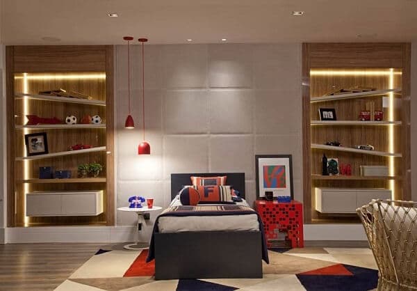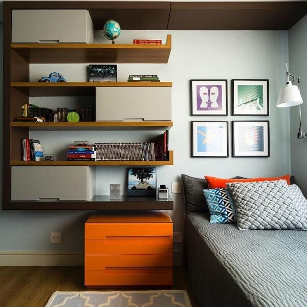 Ambientes reduzidos pedem projetos de decoração criativos. Logo, investir em uma estante de parede para quarto se torna uma excelente opção caso essa seja sua situação. Isso porque, a estante de parede para quarto quando incorporada na decoração maximiza o espaço do ambiente, criando-se uma sensação de amplitude.
