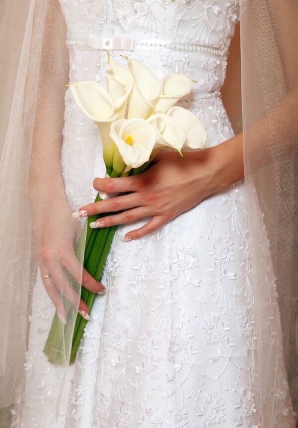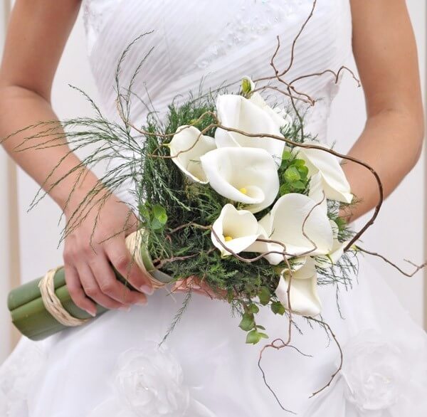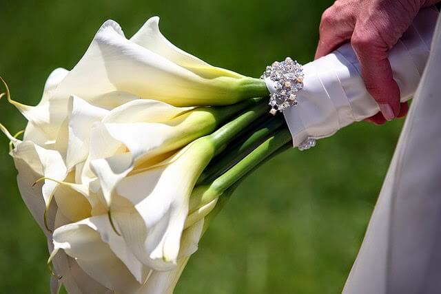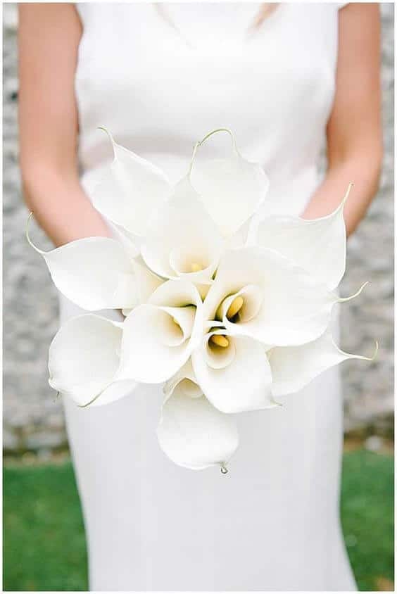 Para o buquê de copo de leite, a flor representa santidade da união matrimonial. Além disso, é uma opção clean, sofisticada e elegante, que orna com diferentes tipos de casamentos e destaca ainda mais a beleza da noiva.