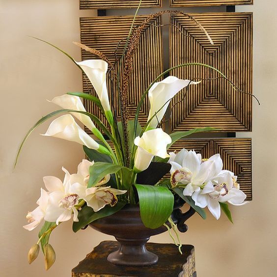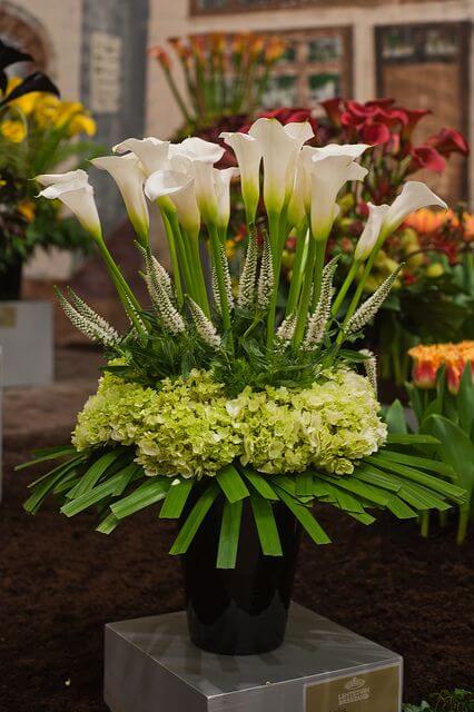 Geralmente o arranjo de copo de leite é composto apenas de copo de leite, mas você pode usar sua criatividade para compor arranjos e buquês com diferentes tipos de flores para adicionar mais personalidade ao ambiente, principalmente em casa.