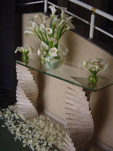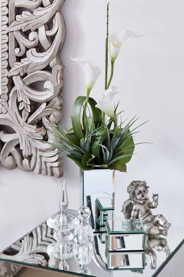 A orquídea é uma ótima escolha para usar com o copo de leite. Para o caso de ambientes clássicos, use a orquídea branca, como feito na foto abaixo. E se a ideia for criar um ambiente mais alegre, invista em cores como o rosa e o azul, que proporcionam decorações lindas.