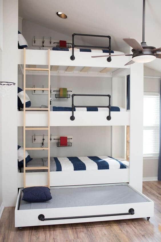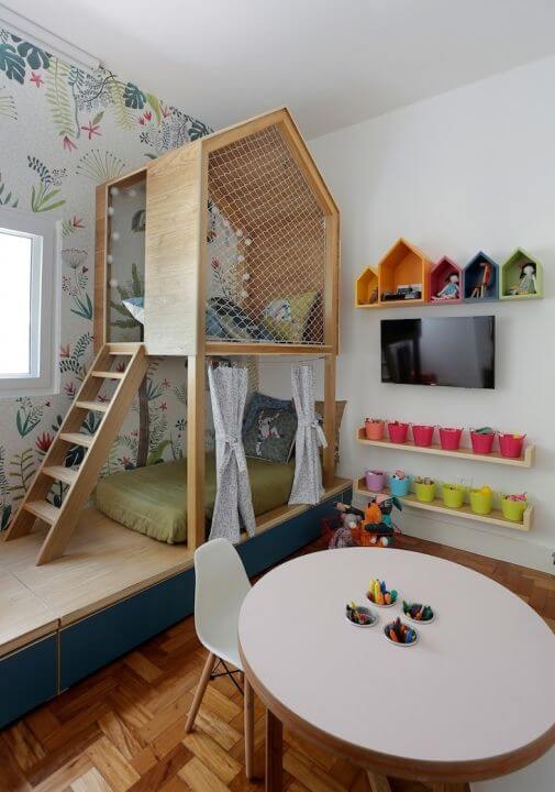 Mas não se esqueça de colocar uma proteção na cama beliche planejada, assim você evita que a criança caia da cama durante a noite e se machuque. Inclusive, você pode usar a criatividade para garantir essa proteção. Alguns modelos podem ser decorados com redes ou até mesmo com uma estrutura diferenciada de acordo com os gostos dos seus filhos.