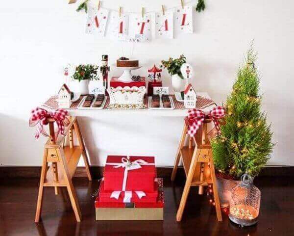 Para você elaborar uma decoração de natal simples, aposte no artesanato em geral e nas cores tradicionais da festa como o vermelho, verde e o branco. Você também pode usar a cor dourada nos detalhes para realçar a decoração do seu espaço.