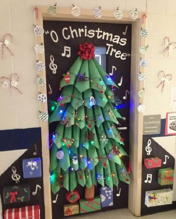 Logo, pode-se dizer que há diversas formas de estruturar um enfeite para porta de natal, seja para casa, escritório, estabelecimento comercial ou inclusive escolas infantis. Os arranjos podem inclusive seguir o desenho de bonecos de neve, Papai Noel, renas, pinheiro, calendário entre outros.