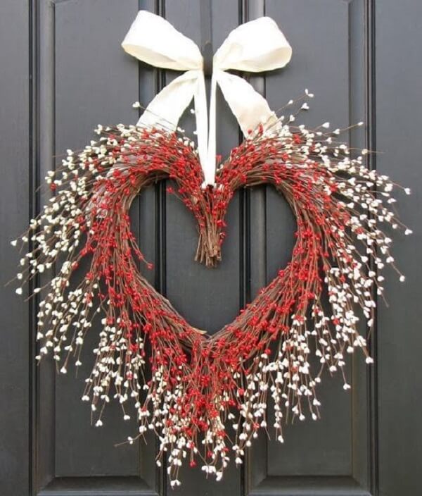A estrutura da guirlanda também pode receber novos formatos. Então, que tal expressar todo o amor que o Natal representa em forma de uma linda guirlanda feita em formato de coração? Garanto que os familiares, amigos e visitantes irão se surpreender com tamanha criatividade.