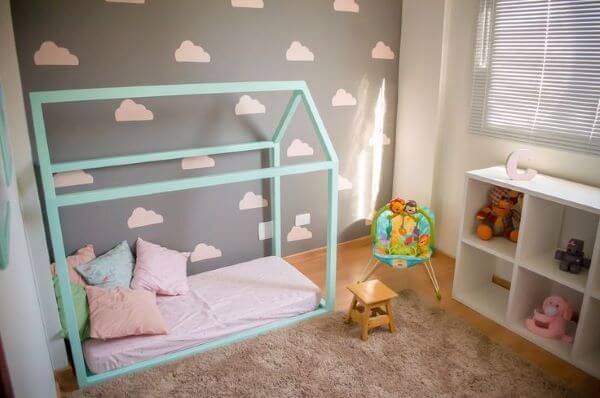 Escolha sua paleta de cores de acordo com sua preferência e decore o quarto com muitas nuvens delicadas, tanto nas almofadas quanto na parede. Se você tiver habilidade com pintura, vale a pena criar padronagens diferentes para deixar o tema nuvem para quarto de bebê mais personalizado.