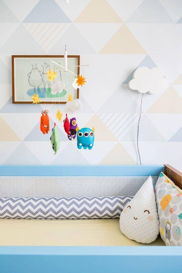 Vamos começar com os temas para quarto de bebê masculino. A dica para acertar nos temas para quarto de bebê masculino é investir em detalhes minimalistas, com estampas geométricas, misturas de cores e enfeites que toda criança ama: ursinhos de pelúcia, bolas coloridas e quadros decorativos.