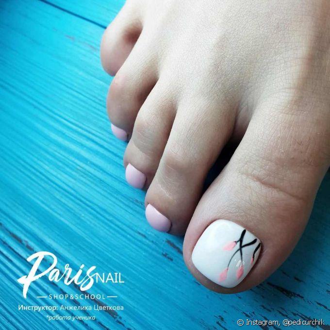 Unhas dos pés também podem ser decoradas! Desenhos de flores, figuras geométricas e a clássica francesinha deixam a pedicure muito mais charmosa e são perfeitas para tirar o esmalte do básico.