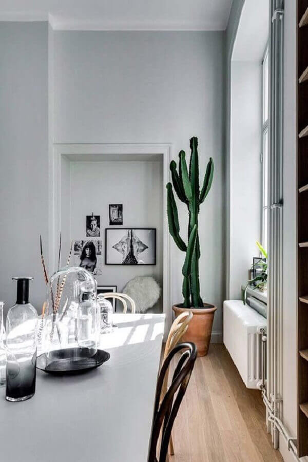 O cacto transforma cria uma atmosfera agradável na sala de jantar.