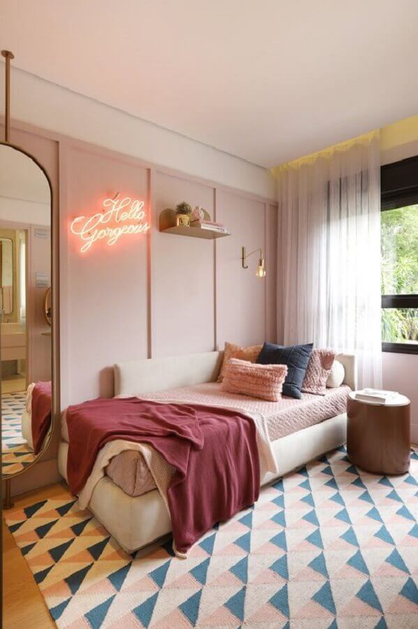 O mais tradicional é que o quarto feminino seja decorado de maneira mais delicada, e claro que com a decoração de quarto juvenil feminino não seria diferente. Se você quer um quarto juvenil feminino clássico, invista em tons de rosa e lilás juntamente com tons neutros como o branco e o bege.