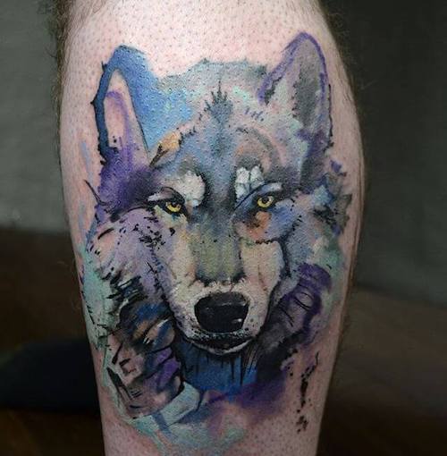 3# Agora uma tatuagem de lobo mais artística em pegada aquarela