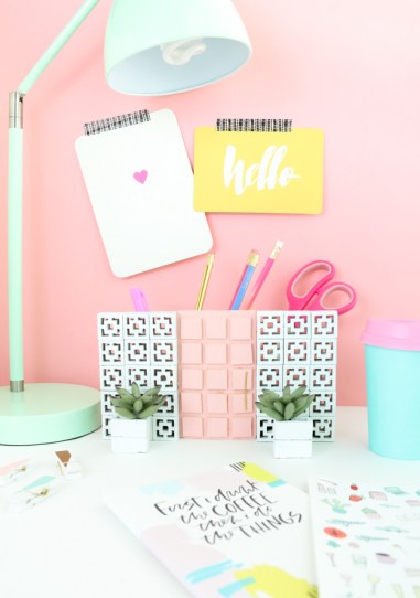 Este próximo DIY usou algo inusitado: bloquinhos tipo aqueles de construção mesmo, sabe? Nos lembrou muito os programas de decoração do GNT! Haha. Você pode conseguir um efeito parecido unindo até mesmo algum tipo de brinquedo antigo que tenha em casa, como um jogo ou peças de algum primo ou irmão! Diferente, né? Fica bonito e é um bom lugar para deixar suas canetas, tesouras, marca-textos e outros. Aprenda a fazer neste link!
