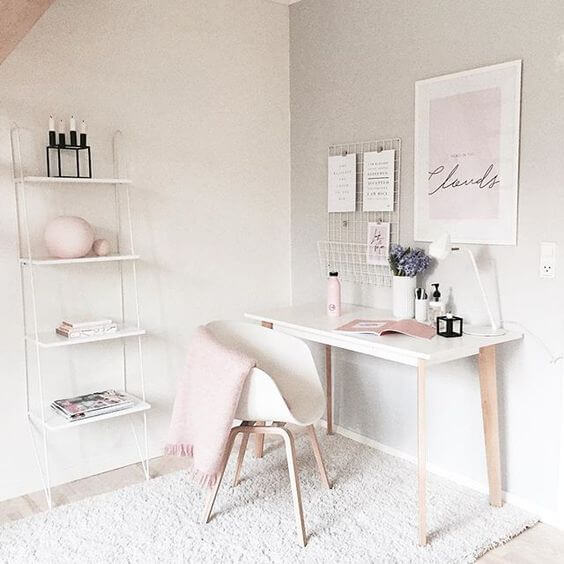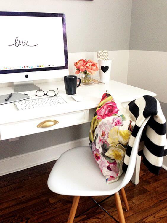 Para evitar as dores, você pode colocar uma almofada confortável na cadeira, ou deixar uma mantinha à disposição. Assim, toda vez que precisar, pode se aconchegar na mesa de estudo e passar horas focada.
