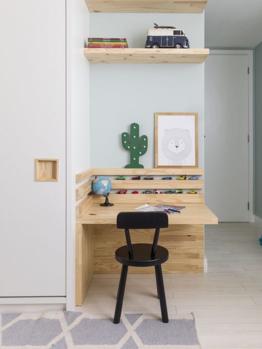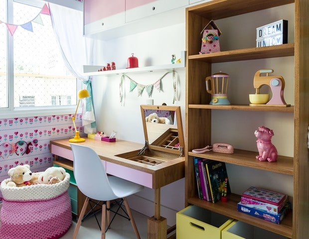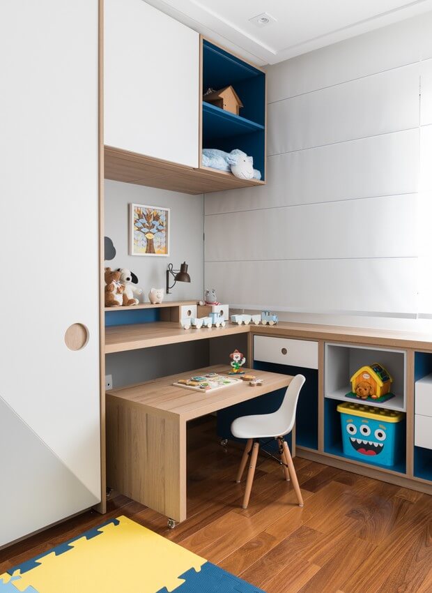 O mais indicado é que a mesa de estudo infantil tenha o tamanho correto para as crianças brincarem com mais conforto. Por isso, mesmo que você tenha um quarto planejado, priorize o tamanho da mesa de estudo infantil para facilitar o dia a dia do seu filho.