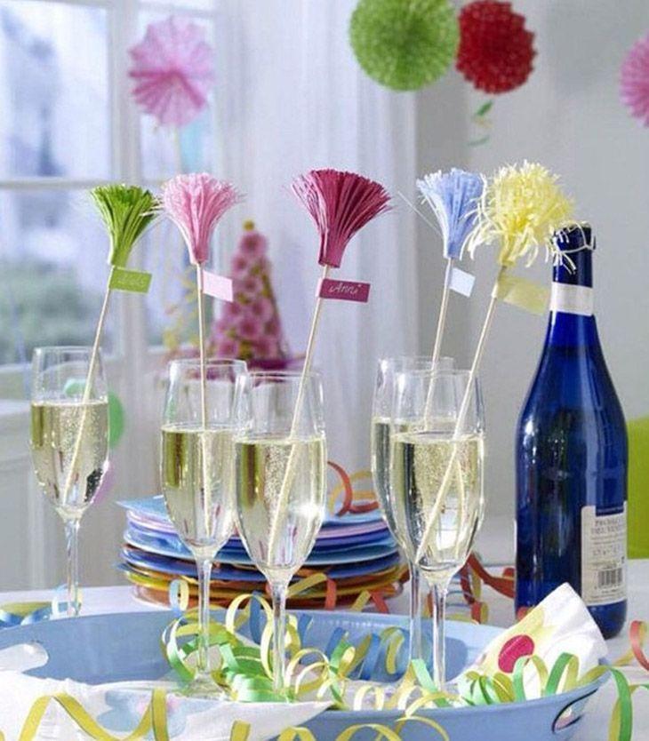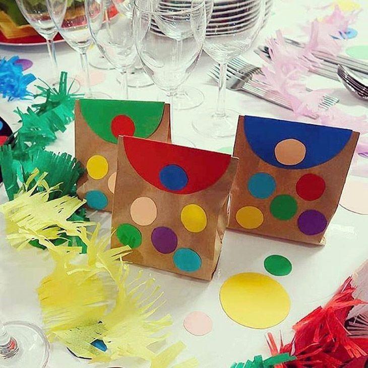 - Use objetos fora do comum para decorar a mesa. Você pode, por exemplo, usar fitas com apitos ou pulseiras coloridas de acrílico como porta-guardanapo, ou então pequenas cornetas coloridas como marcadores de copos e taças;