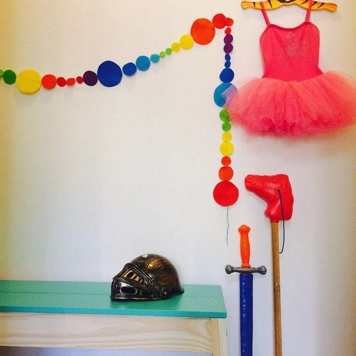 - Coloque tecidos presos no teto com fita adesiva, como uma canga ou uma colcha bem colorida. Se não tiver, pode usar pedaços de TNT, que o efeito é o mesmo. Eles servem para decorar ou delimitar espaços.