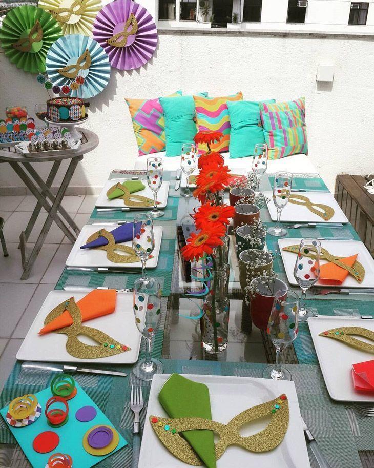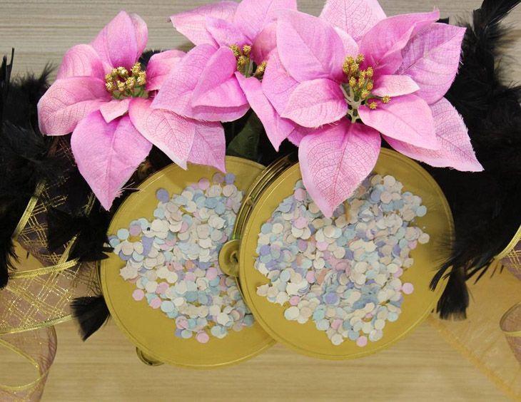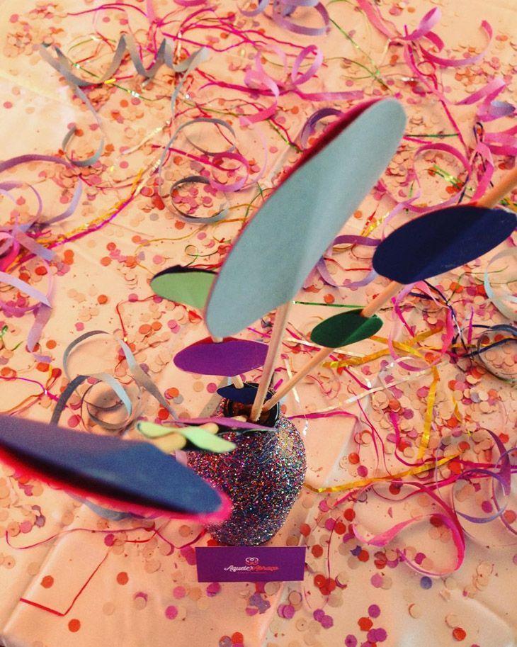 - Use objetos fora do comum para decorar a mesa. Você pode, por exemplo, usar fitas com apitos ou pulseiras coloridas de acrílico como porta-guardanapo, ou então pequenas cornetas coloridas como marcadores de copos e taças;
