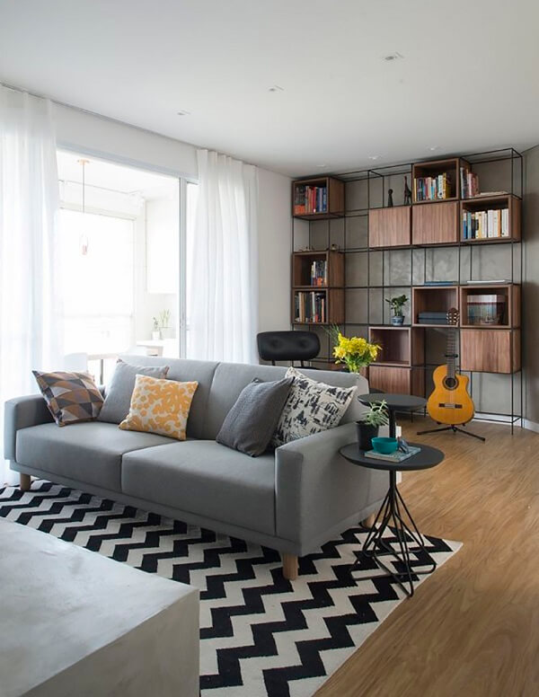 Os tapetes geométricos são lindos, dão um toque moderno à decoração e, inclusive, estão super em alta. Principalmente em ambientes como a sala de estar.