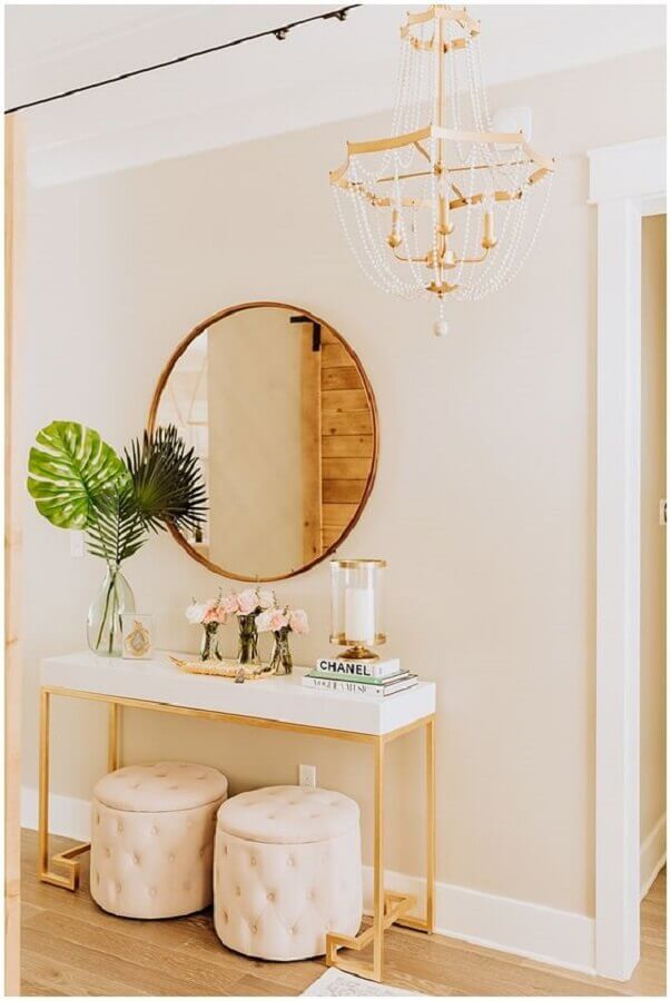 E caso seja um hall de entrada pequeno com espelho com moldura, procure por modelos que se harmonizam ao estilo de decoração e demais móveis escolhidos para o ambiente.
