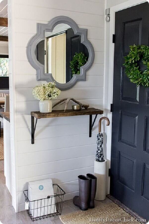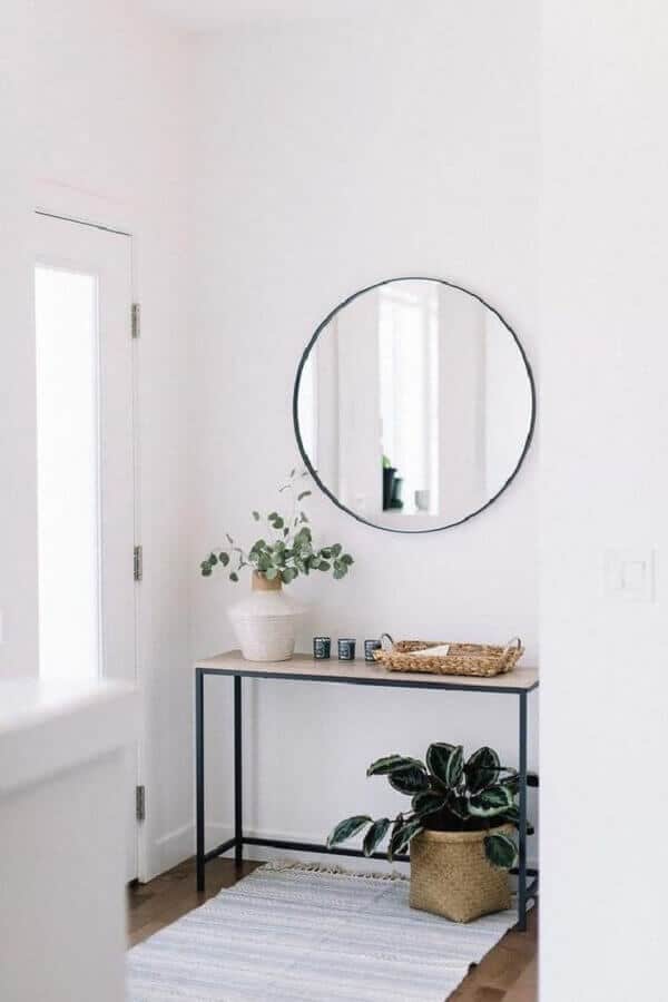 Espelhos decorativos são peças coringas em decoração de ambientes pequenos, por isso, eles também são super bem vindos na decoração de hall de entrada apartamento pequeno.