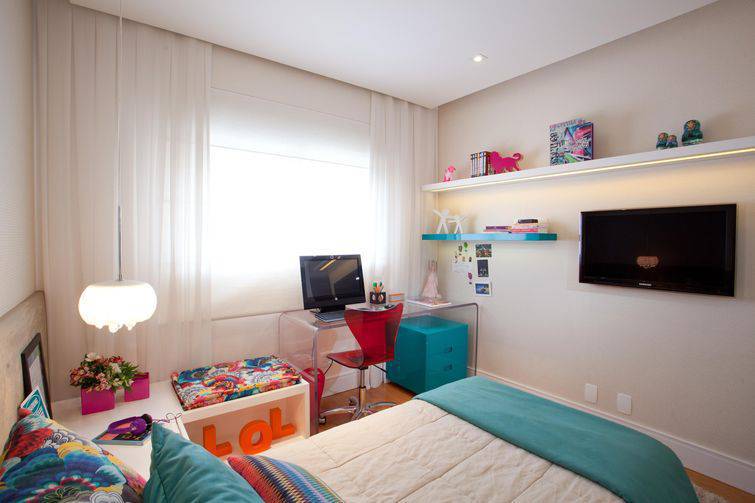 Com um ar mais juvenil, as escrivaninhas para quarto coloridas deixam o quarto muito divertido e podem até ajudar na criatividade. Além disso, se for uma escrivaninha para quarto infantil, nada melhor que muitas cores pra deixar o quarto dela ainda mais bonito e animado.